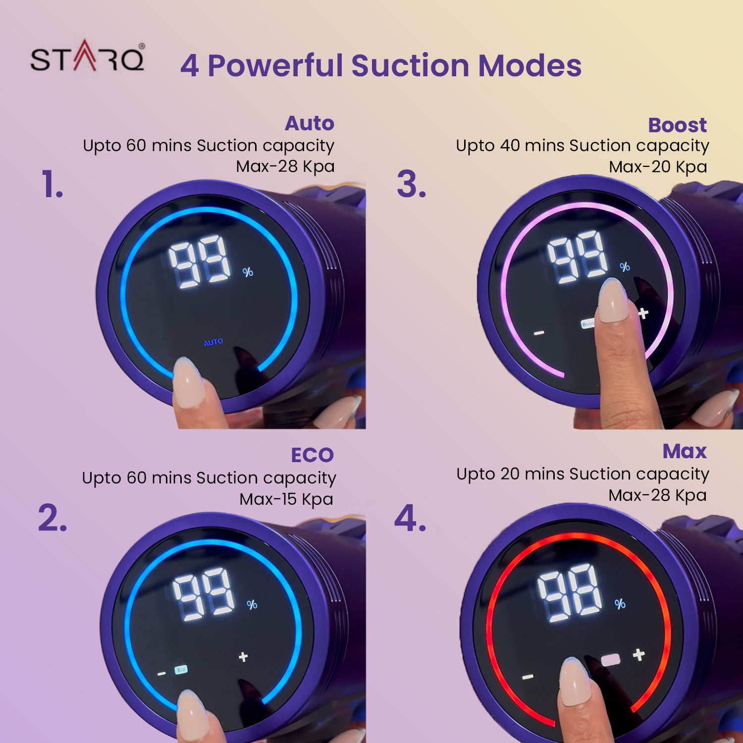 - LED Touch Display: With the digital touch screen, Starq Flexibend stick vacuum is more convenient to use & control. Easily switch between Eco, Boost, Max & Auto mode with a single touch