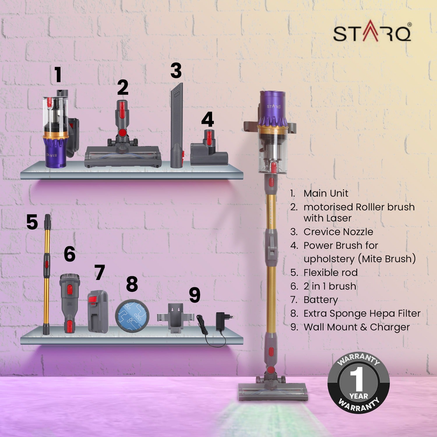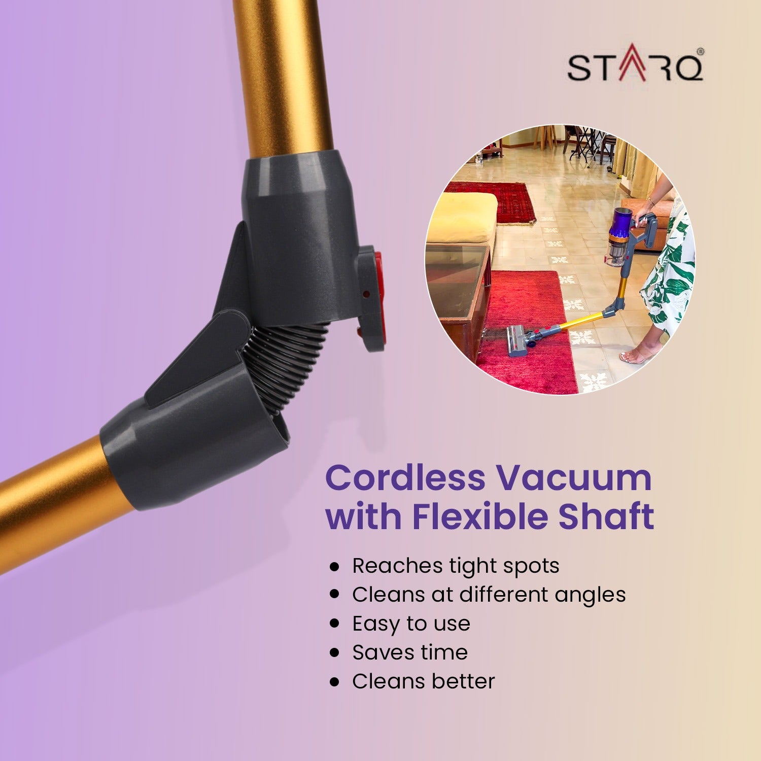 - User-friendly: Starq Flexibend cordless vacuum cleaner is distinguished by its lightweight design, so moving it from place to place will not be a challenge.