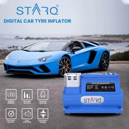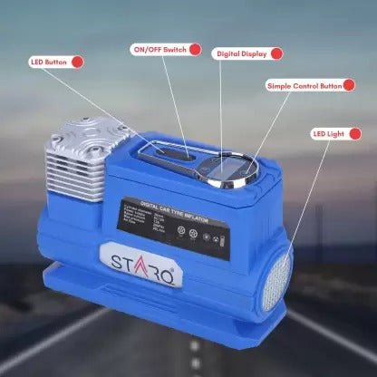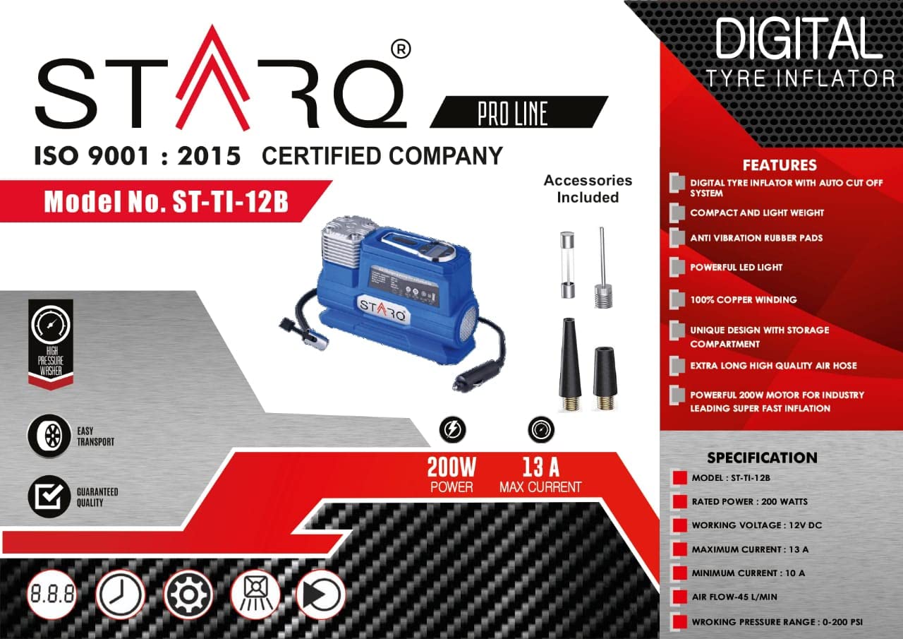 STARQ® Digital Car Tyre Inflator - 12V DC Portable Air Compressor with LED Light 200 Watts Upto 200Psi 1 Year Warranty(ST-TI-12B)