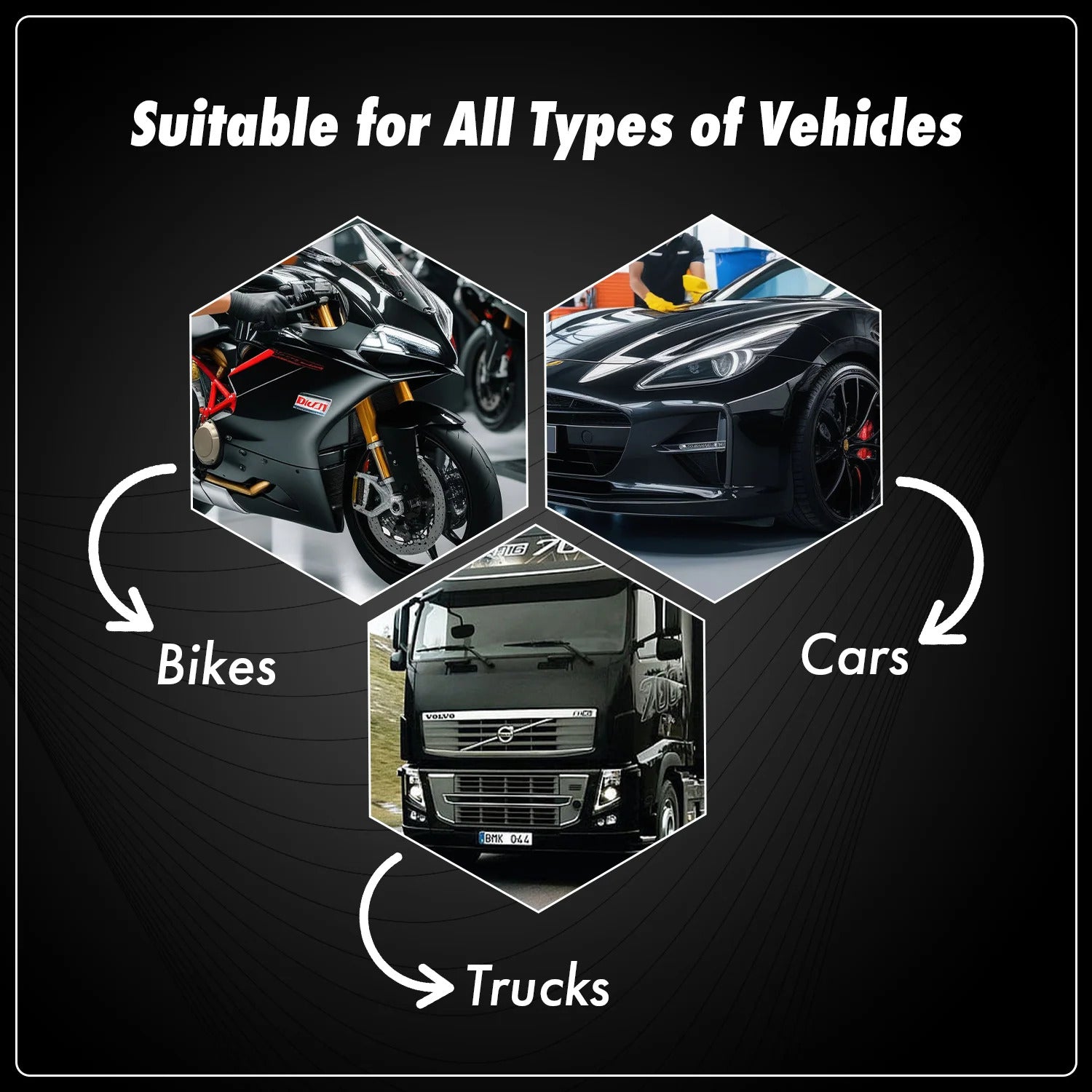 Safe to use on multiple exterior surfaces, including painted panels, clear coat, metal, and plastic trims. Suitable for both cars and bikes, this ceramic spray provides consistent protection and gloss across different vehicle types, making it a practical all-in-one coating solution.