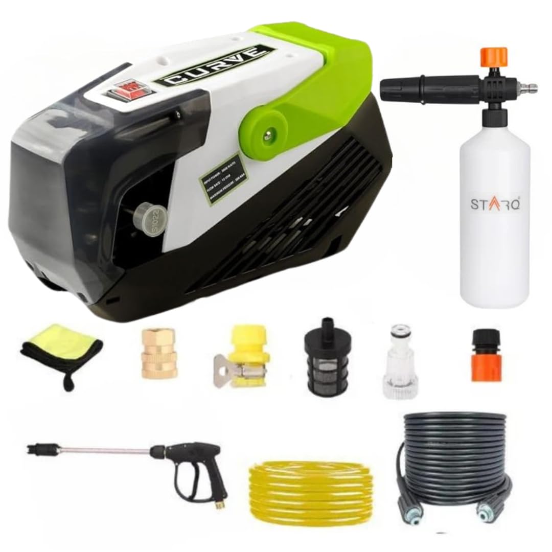 The STARQ CURVE is a powerful, heavy-duty high-pressure washer designed for versatile cleaning across cars, bikes, driveways, and home surfaces. Featuring a robust 3000W motor and delivering up to 350 Bar pressure with 15 LPM flow rate, it ensures deep and efficient cleaning with every use.