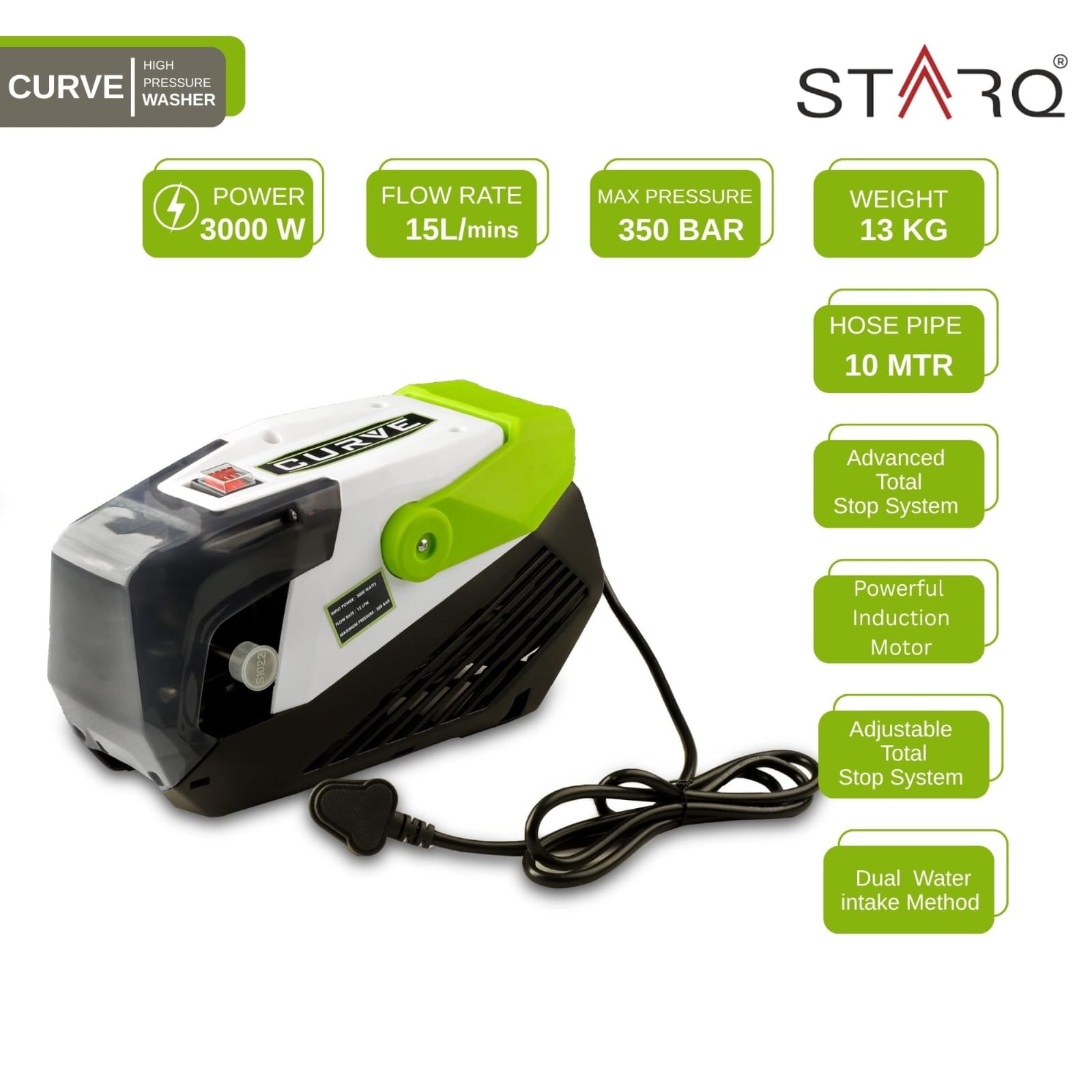 Starq curve High Pressure Washer, Car Washer, 3000 Watts Motor, 350 Bars, 15L/Min Flow Rate, 10 Meters Outlet Hose, Portable, Car, Bike & Home Cleaning
