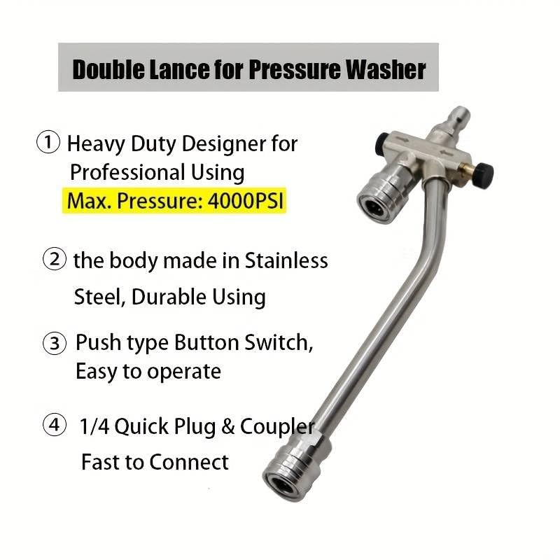Starq Dual Lance Pressure Washer Wand For Foam Cannon, Stainless Steel With 1/4 Quick Male Connect - DV500 - Easy Switch Betweem Foam Lance and Nozzle - For Car, Bike Floor, Roof Cleaning