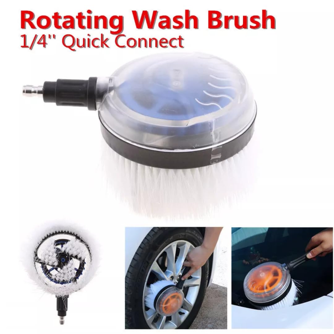 Effortlessly clean various surfaces with our Universal Rotating Wash Brush. Powered by water technology, this energy-saving brush gently and effectively cleans without damaging surfaces. The 1/4-inch quick disconnect connector allows for easy attachment to high-pressure washers