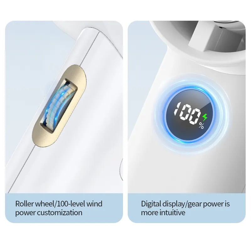 Beat the heat in style with this ultra-modern Mini Handheld Turbo Fan, featuring a powerful turbo-style airflow system and sleek, minimalist design. Compact yet efficient, it’s perfect for on-the-go cooling whether you're traveling, commuting, or just relaxing outdoors. With a front-facing digital battery display, one-touch operation, and whisper-quiet performance, this fan is a smart and stylish solution to stay cool anywhere, anytime.
