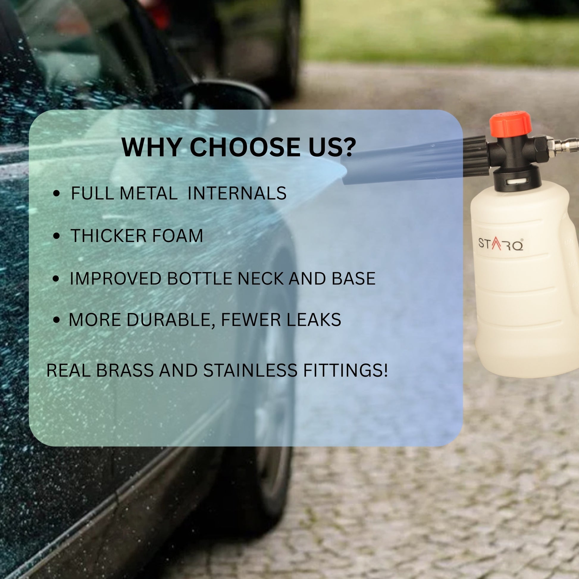 Starq New Advance Adjustable Pro Foam Lance/Cannon for Thick Clinging Foam, 1000 PSI, 1.1mm Orifice, Brass/ABS Nozzle,1/4" with Quick Connector, Plastic (FL2)