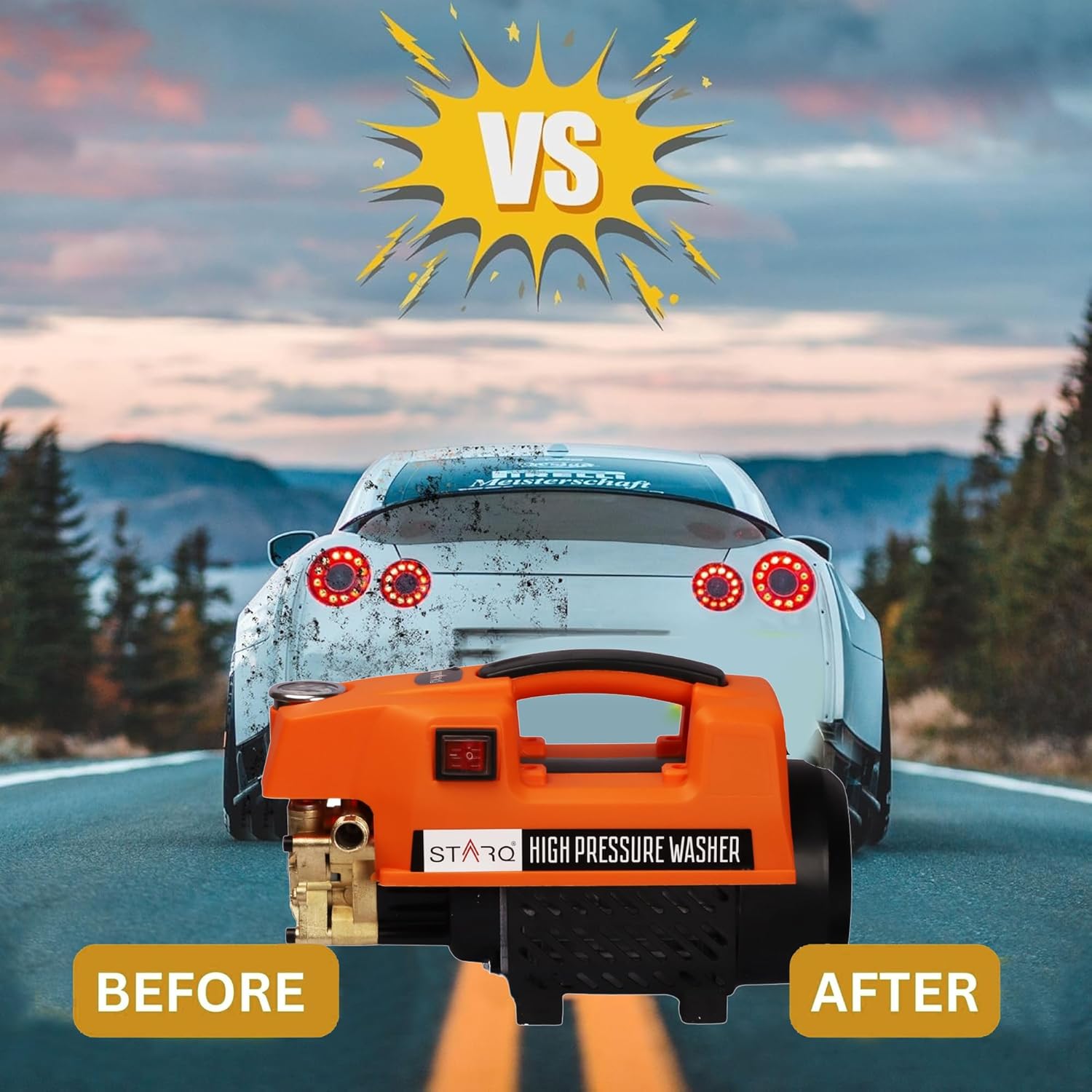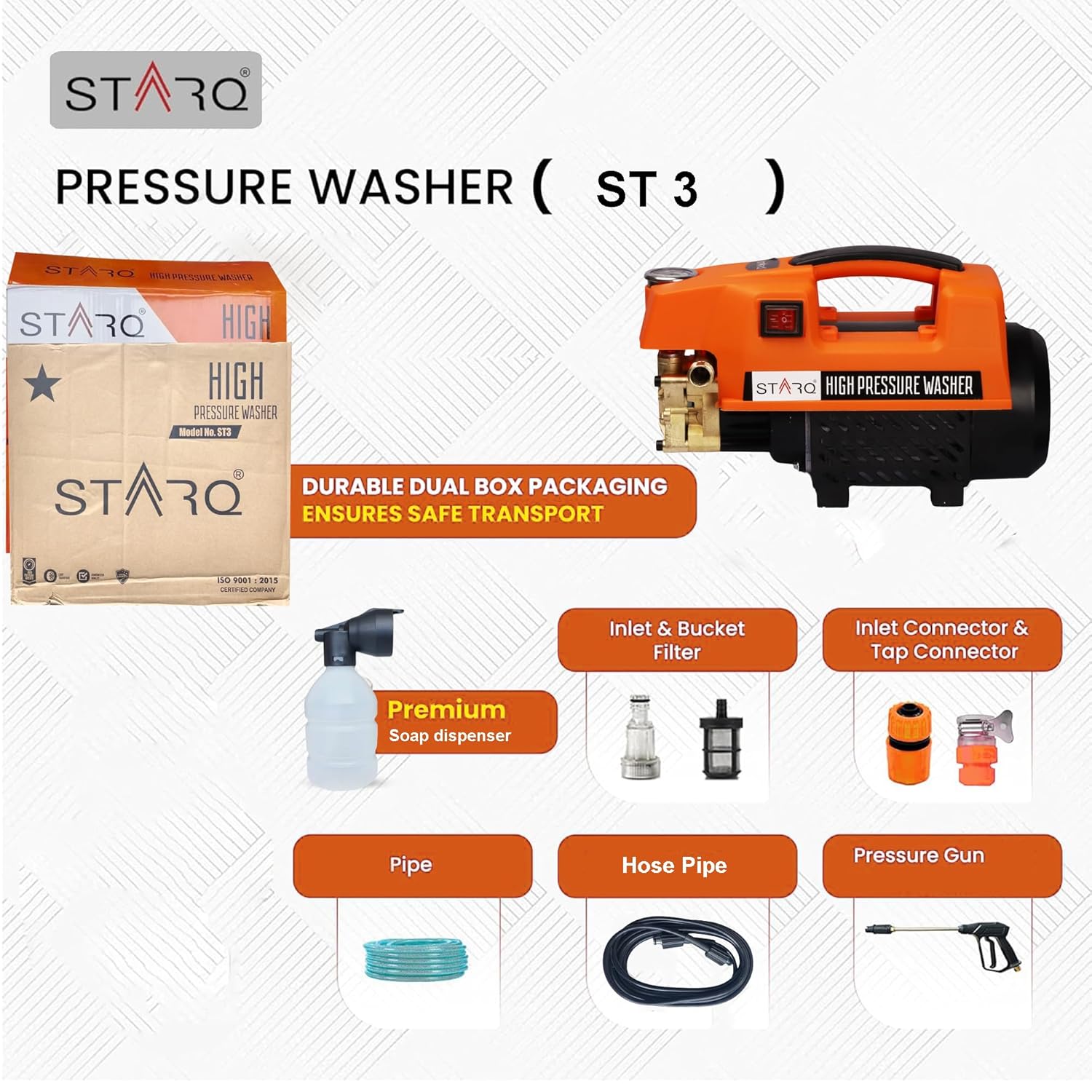 STARQ ST3 1800W Heavy Duty High Pressure Washer 150 Bar, 8L/Min Flow, Brass Coated Pump, Copper Motor Portable Car, Bike, Home, AC & Solar Cleaning Machine