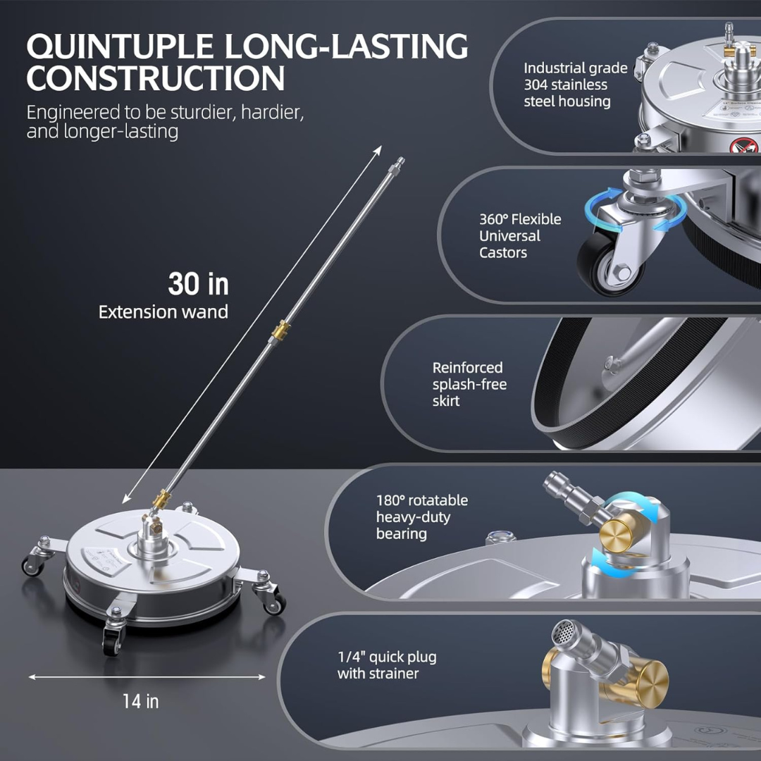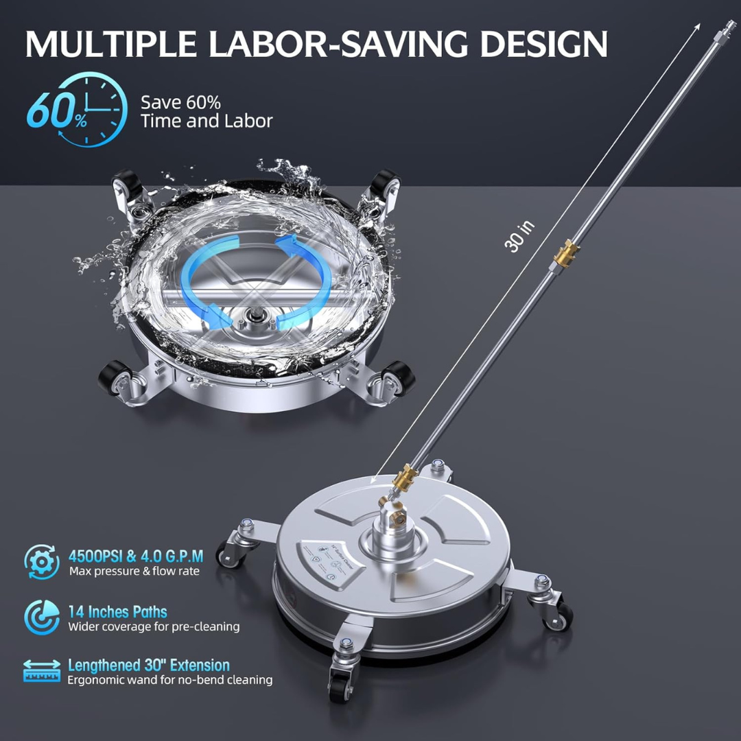 A high-performance surface cleaner designed for use with pressure washers, engineered to swiftly and efficiently remove dirt, grime, and stains from various surfaces. This versatile cleaning tool typically features:
